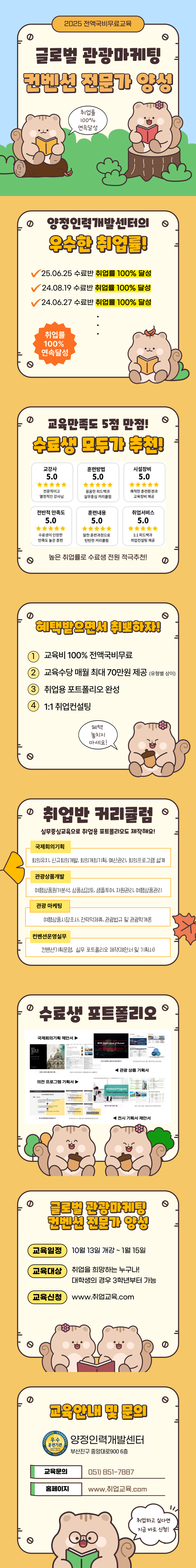 이제는, 관광·MICE컨벤션 전문가로 양정인력개발센터에서 시작하세요!