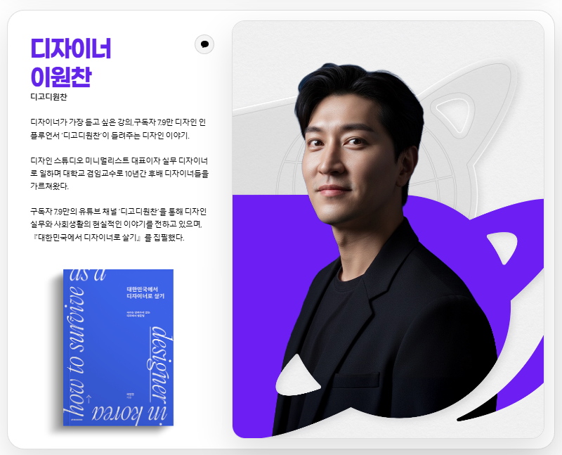 이원찬 대표님께서는 디자인 실무에 대한 현실적인 이야기를 들려주실 예정인데요,